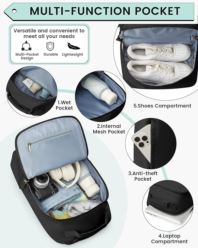 - Suitable for Various Occasions:The stylish backpack with shoe compartment is perfect for outdoor sport, overnight carry-on, weekend trips, camping, vacation trips, travel, hiking and yoga in the gym.