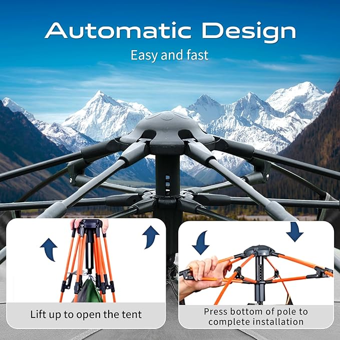 - Installation design: Simple disassembly quick installation Open the top of the tent, lift the top, open the mechanical device, and then fix the joint at the bottom in place, press down the position of the rod and spring instantaneously automatic installation