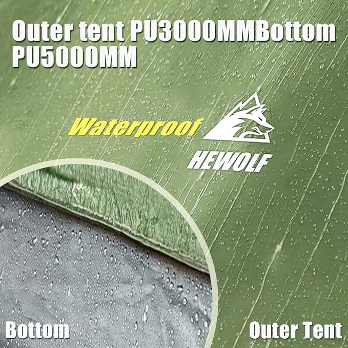 - Waterproof material: We use outdoor 4500mm exclusive waterproof grade, using SBS zipper, 210T material at the bottom, 10000+ waterproof. With sealed seams and unique waterproof strips, always keep it dry to provide you with a comfortable camping experience
