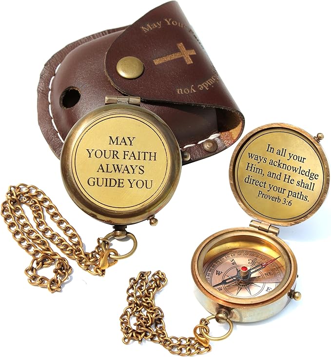 - Solid Brass Compass Antiquated Brass Finish With May Your Faith Always Guide You Quote Engraved Compass with Leather Case