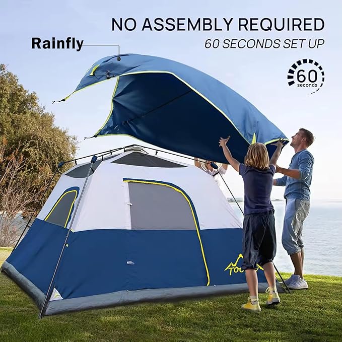 - Experience the Ultimate Camping Adventure with our 6-Person Instant Tent - Say goodbye to complicated tent set-up! Our instant tent features telescopic poles for quick and easy assembly in just 60 seconds. The compact design also makes it perfect for light travels.