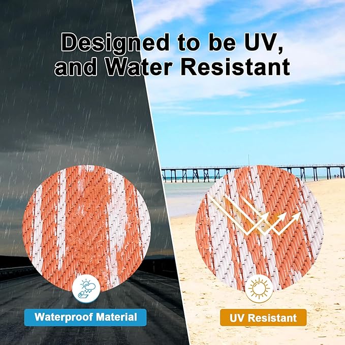 - XXL Large Reversible Outdoor Rugs: Featuring a classic striped pattern on both sides, this 8x10 ft outdoor area rug allows you to instantly refresh your patio, porch, backyard, deck, RV campsite. And this outdoor deck rug is reversible, two-sided design allows you to have two different looks,both sides can blend perfectly with nature and look very full and comfortable.
