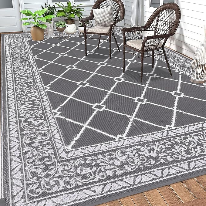 • Reversible Outdoor Rugs: Featuring a classic moroccan pattern on both sides, this 6x9 ft outdoor area rug allows you to instantly refresh your patio, porch, backyard, deck, RV campsite. And this outdoor deck rug is reversible, two-sided design allows you to have two different looks,both sides can blend perfectly with nature and look very full and comfortable.