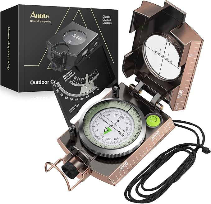 - Military Compass with Inclinometer and Graduated Scale: Anbte professional compass is made of high quality zinc alloy metal body, military construction, waterproof and shockproof. Can be used in extreme weather. Built-in inclinometer and side with scale, can measure the slope and height