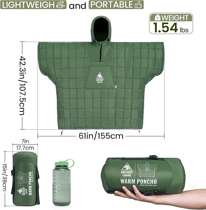 OneTigris Camping Blanket Honcho Poncho with 3M Thinsulate Insulation,Wearable Sleeping Bag Poncho for Camping Large Ultralight Water-Resisitant Warm Wearable Blanket for Outdoor Camping,Hiking