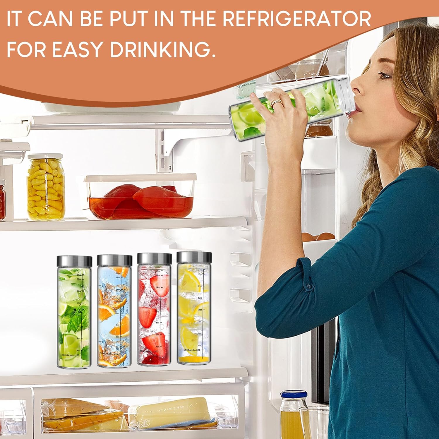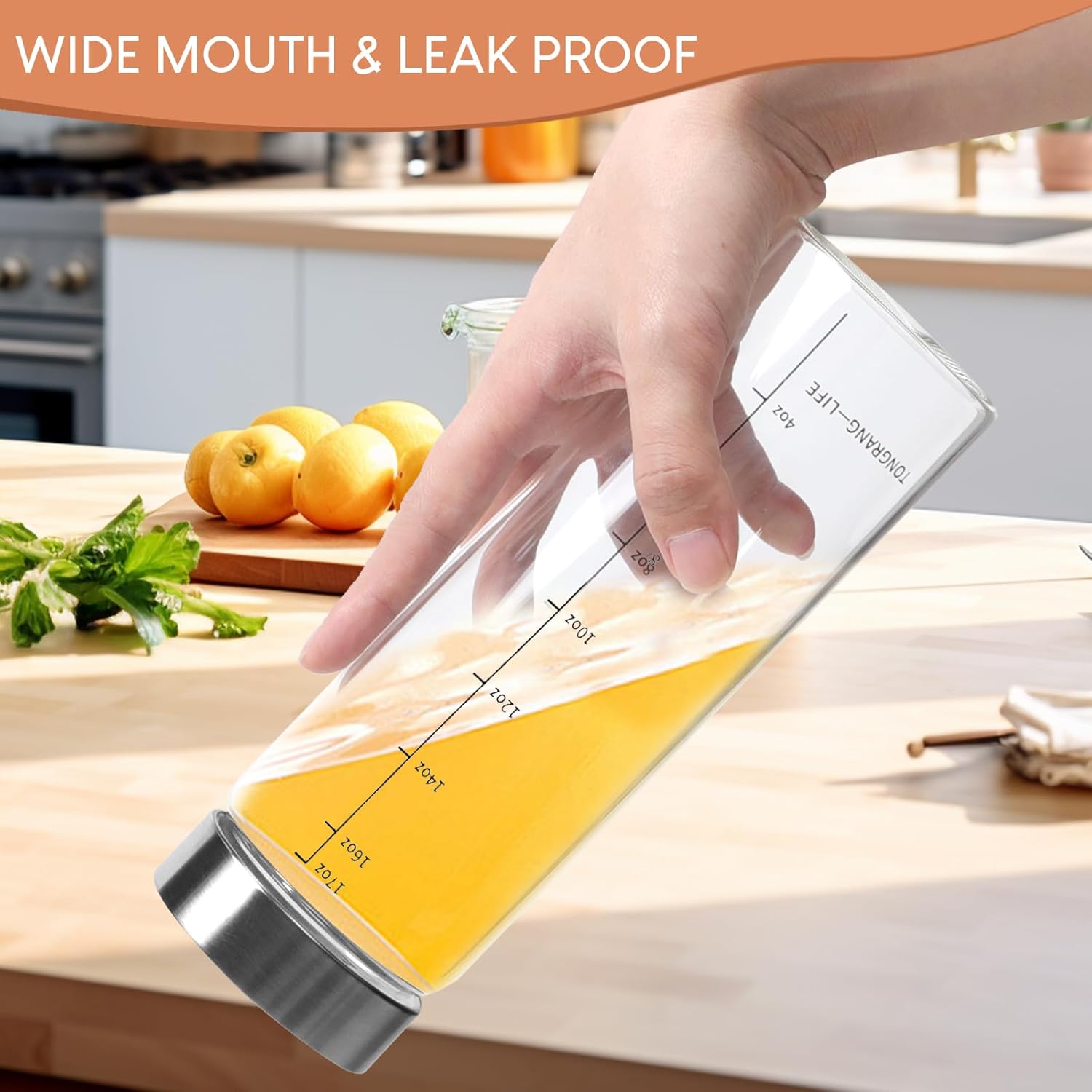 - High Quality Borosilicate Glass:The glass juice bottles are made of high borosilicate glass, which is more thicker, clear and better quality than ordinary glass. And the glass water bottles are all for hot or cold drinks. The glass shaker bottles are recyclable and reusable.