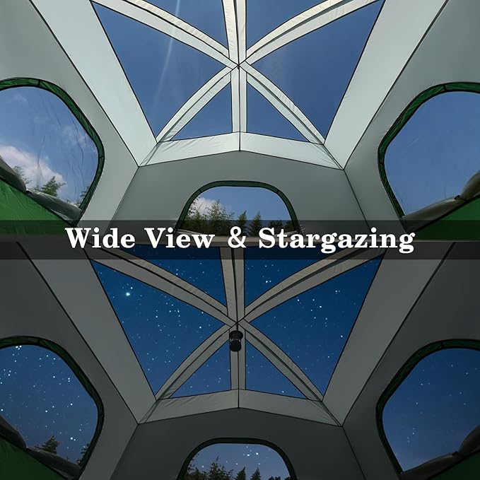 - 【Excellent Views & Ventilation】The top of our cabin tent uses a large area of mesh to give you a better view while ventilating, when the top rainfly is removed at night, this tall tents for camping can also be used as a stargazing tent. The tent is equipped with 5 large windows, which can quickly take away the heat out of the tent and give you a better camping experience.