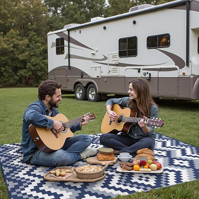 - All-nature & Eco-friendly: The indoor outdoor rug is made of environmentally friendly 100% virgin polypropylene. Edge heat treatment process to make the outdoor area rug edge firm. Tightly woven plastic technology is perfect for bare feet around your patio set or protecting delicate deck surfaces. The plastic rug fabric can withstand repeated wear and tear, you don't need to spend time maintaining it, which saves you a lot of time