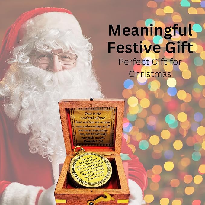 - Religious Gifts for Men Catholic Christian Boys, Women & Girls :- Trust in The Lord with All Your Heart -Proverbs 3:5 Quote Engraved on a Handmade Compass in a seasoned solid mango wood box makes a perfect Catholic Christian religious gifts for him & her..