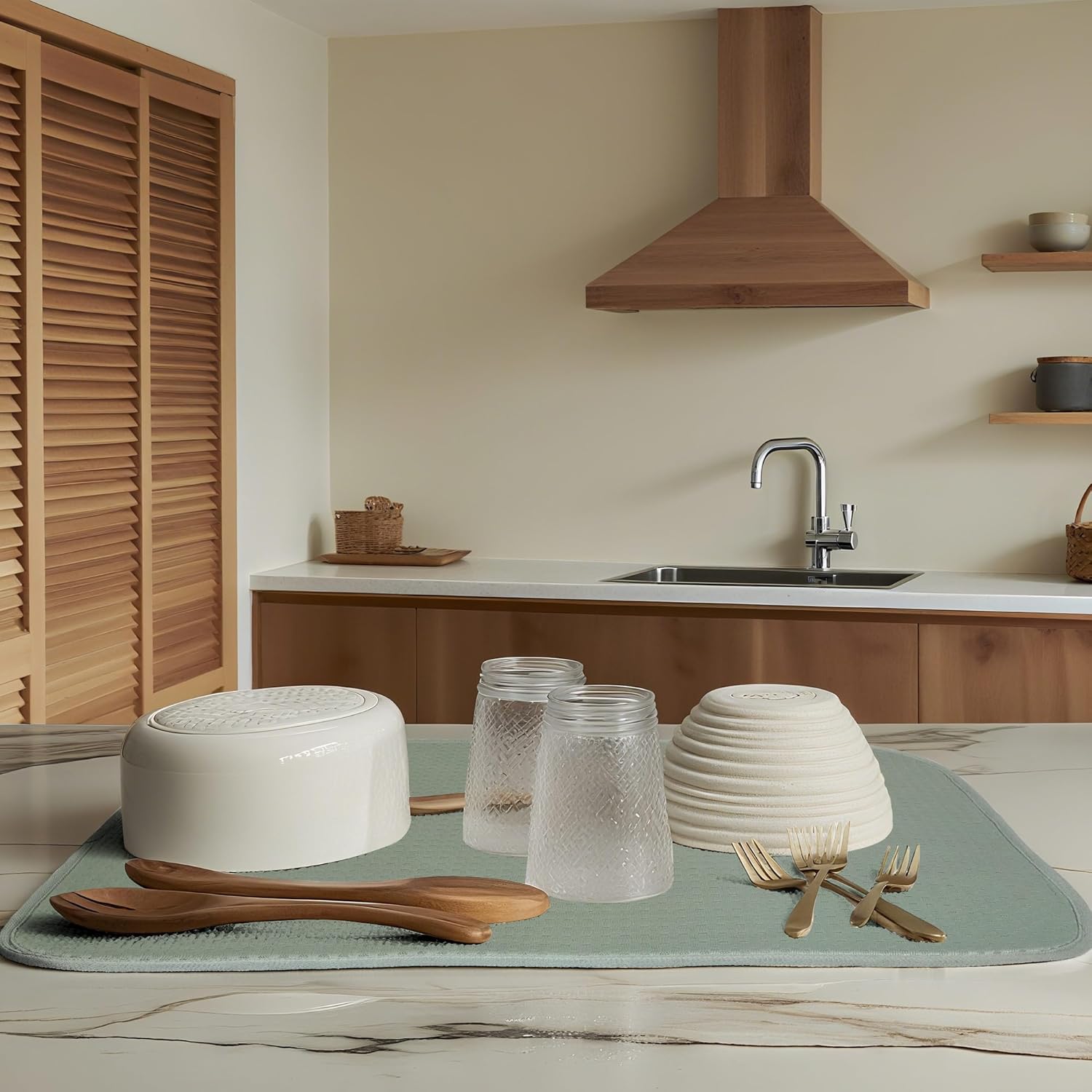 - Beautiful and Durable: This kitchen counter mat features an artistic design that adds charm to your space. Built tough, it withstands frequent use and acts as one of the best drain mats for kitchen counter, while being gentle as dry mats for kitchen dishes, protecting your dishes from scratches