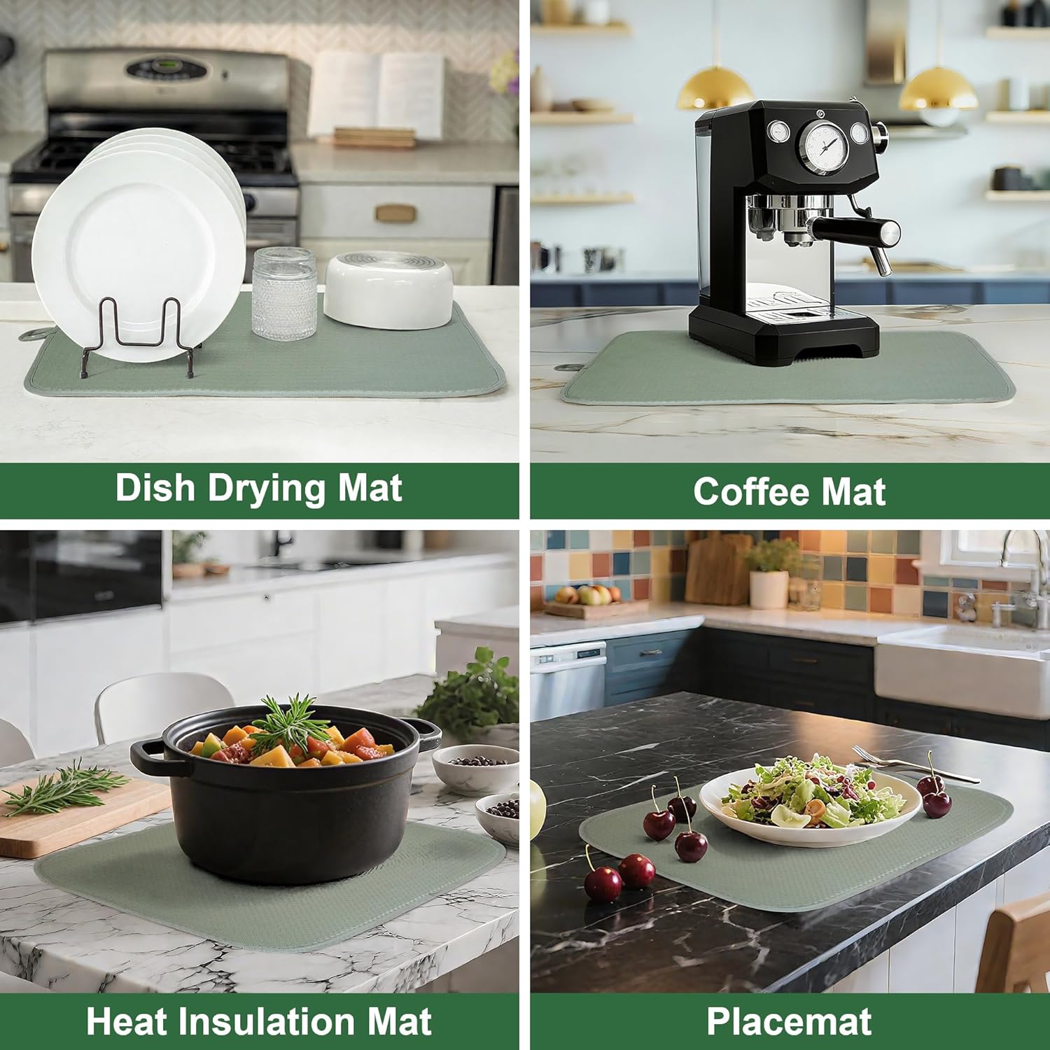 2 Packs Dish Drying Mats for Kitchen Counter, Drying Matt Kitchen Counter, Sage Green Kitchen Dish Drying Mat & Dish Dryer Mat for Drying Dishes, 20 x 15 inches (Green)