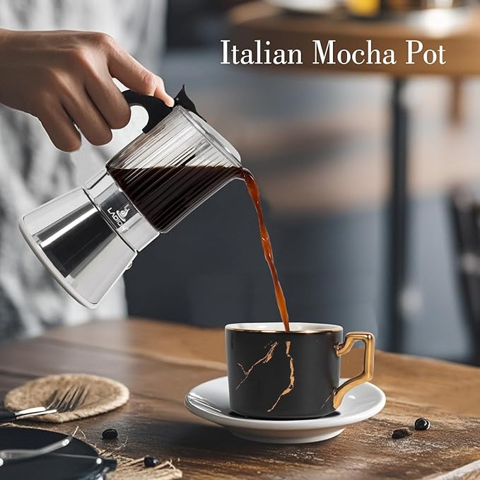 - 【Crafted for Durability and Safety】 Constructed from premium borosilicate glass & stainless steel, the LAOION Moka Pot is built to withstand the rigors of daily use. Our non-toxic, rust-proof design ensures that every cup of coffee is not only delicious but also safe for you and your loved ones.