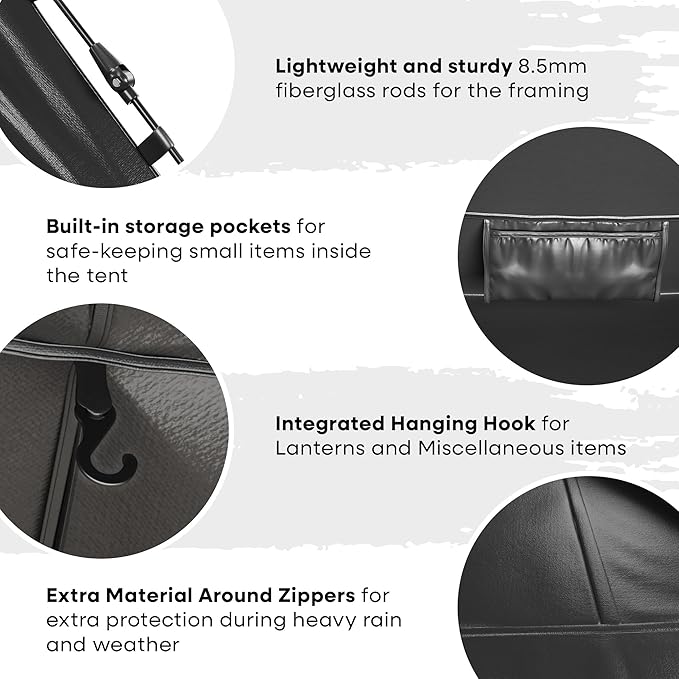 - EASILY REACH EVERYTHING you need, like your phone, book, card games, or wallet in our family camping tent's internal storage pocket. To make your outdoor escapade even better, hang your night lamp on the hook and enjoy a well-lit space for all your activities