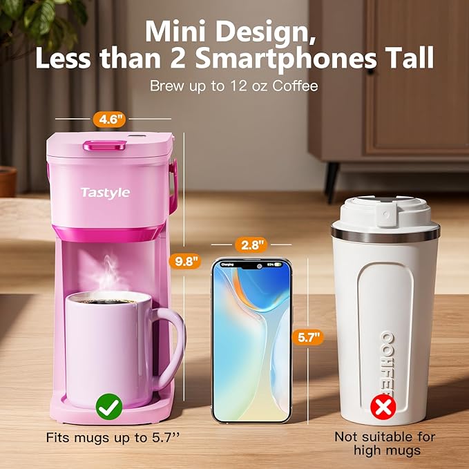 - 12 Oz Visible Water Tank : The reservoir of tastyle one cup coffee maker features markings for 6, 8, 10, and 12 ounces, allowing you to easily control the water volume for your desired coffee strength