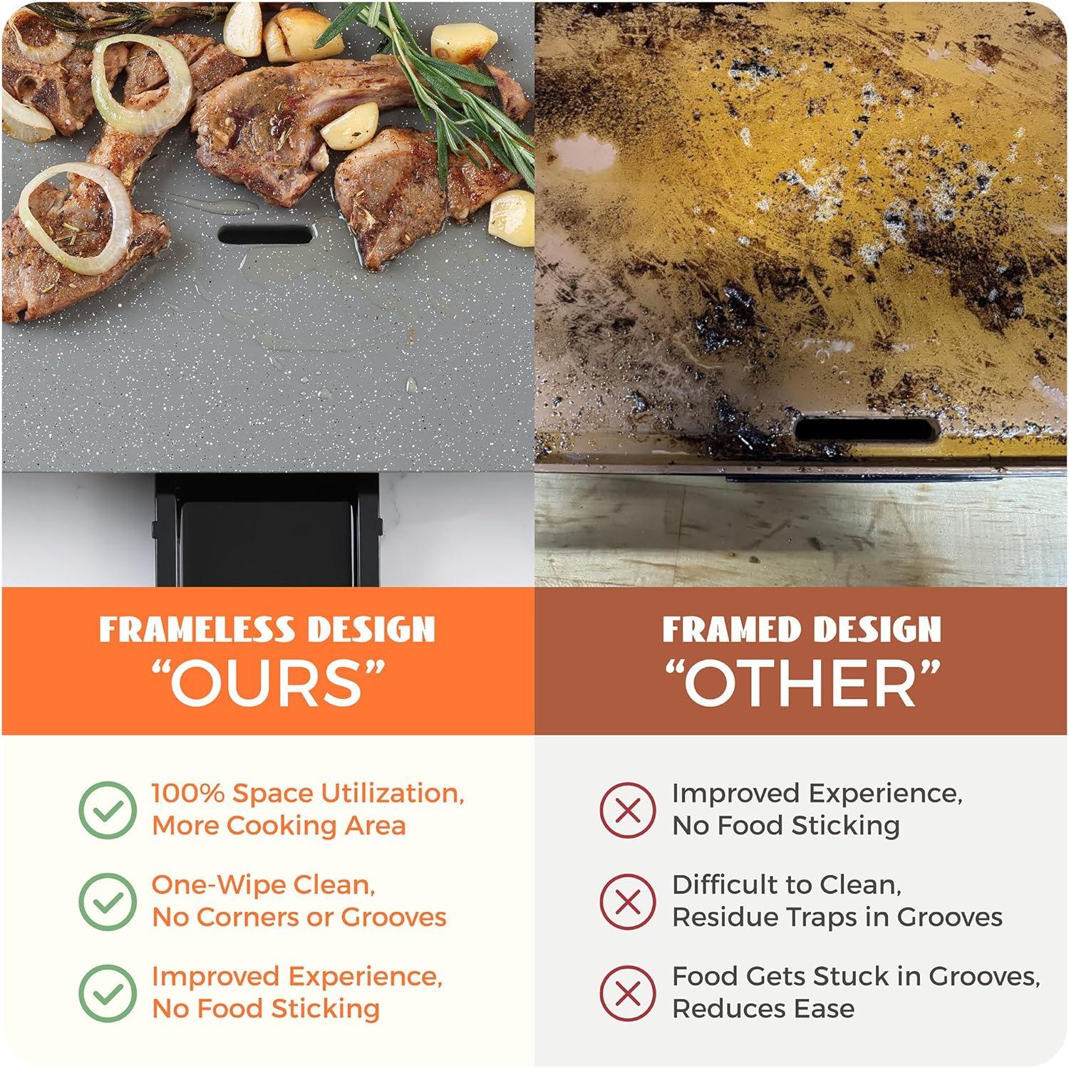 - 3 Years Durable Nonstick: Ultimate Granite Nonstick Coating, Experience 8x more durable than standard coatings *vs typical ceramic electric griddles