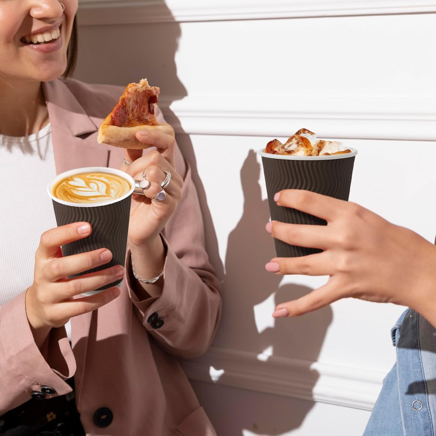 12 oz Coffee Cups Disposable, 100 Count Insulated Paper Coffee Cups, Corrugated Ripple Wall Design Paper Cup, Hot Cold Drinking Cup for Party, Picnic, Travel, Business, Home