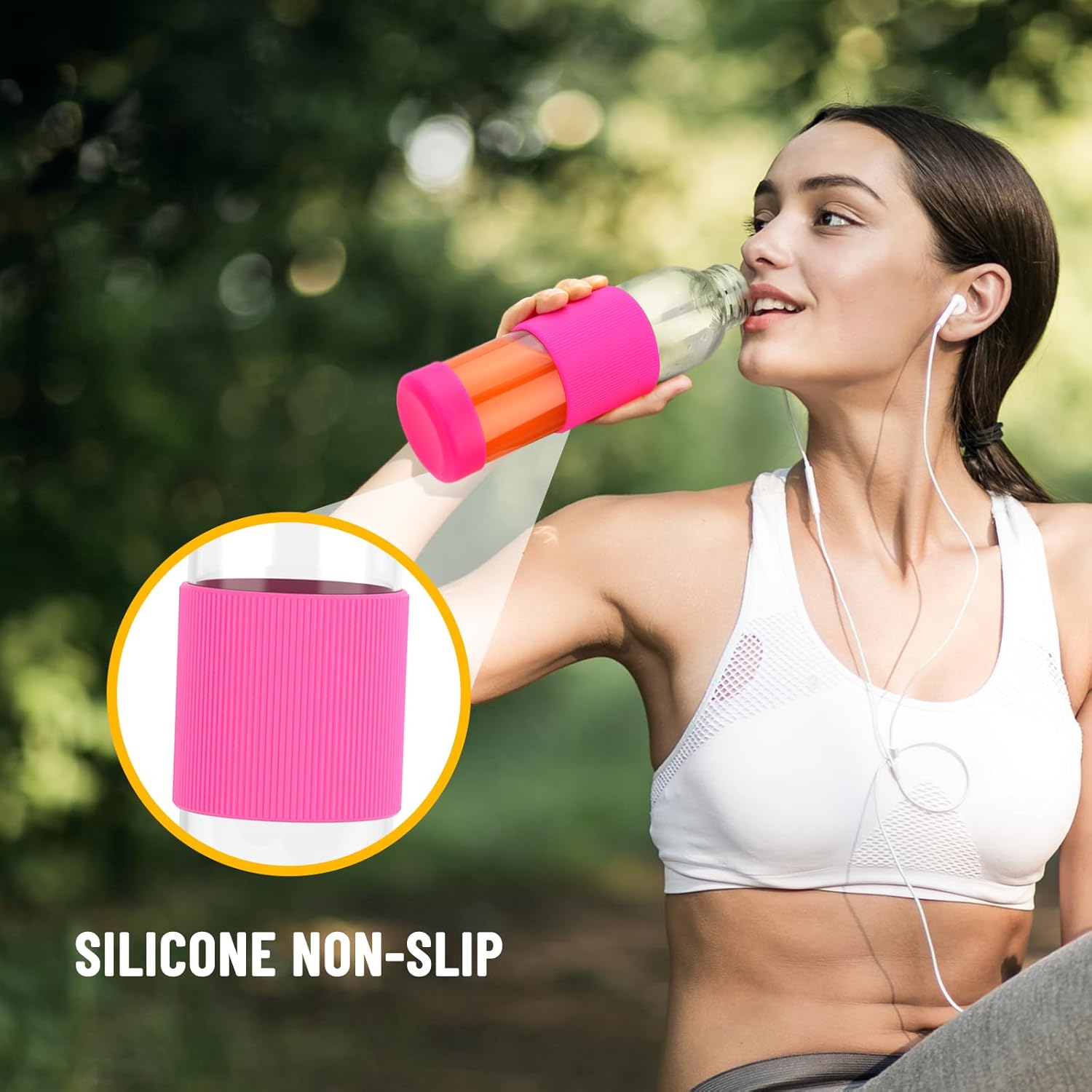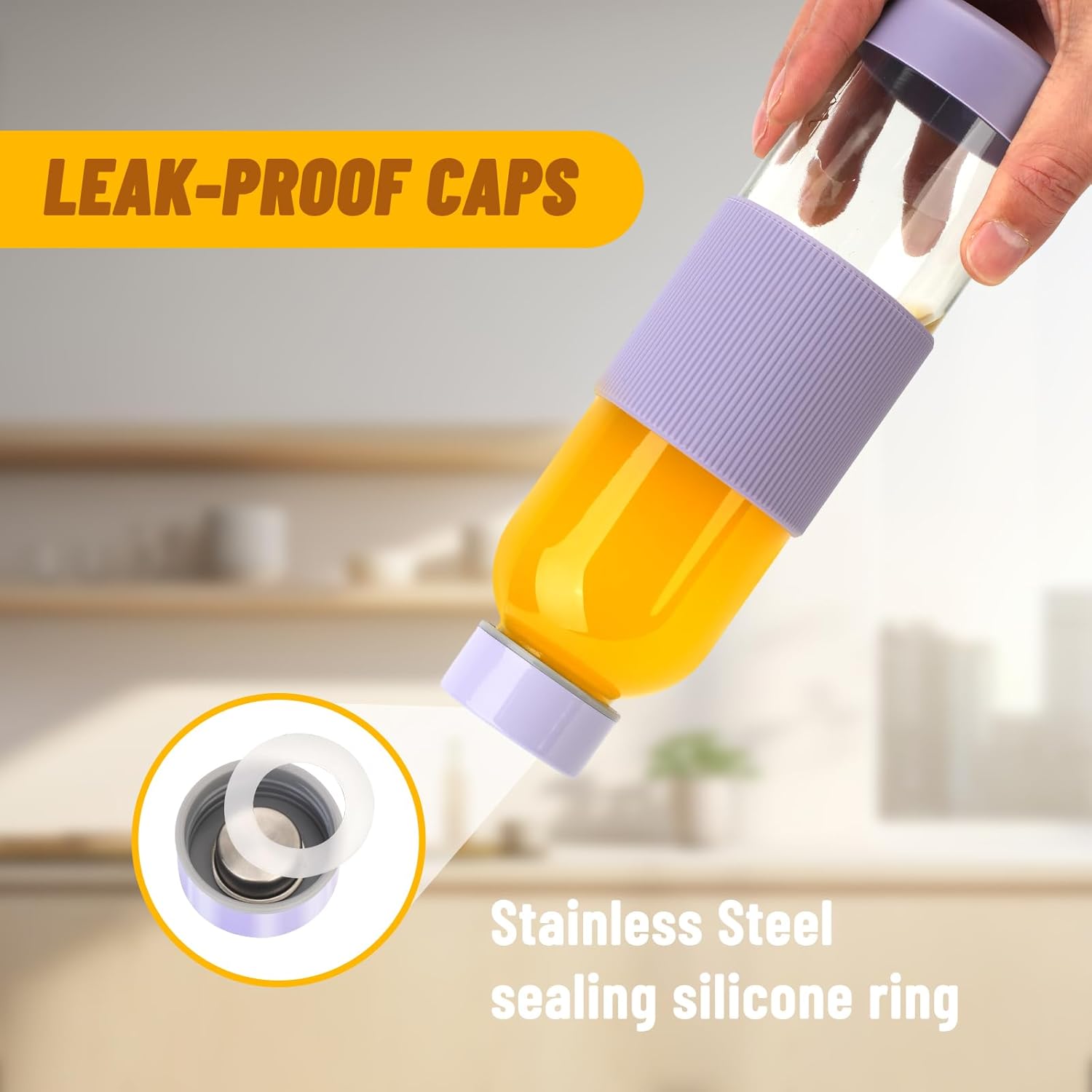 - AIRTIGHT,LEAK PROOF AND SILICONE SLEEVE: Each juice bottle comes with a stainless steel cap which is lined with a rubber O-ring, 100% leakproof. Their glass water bottle with silicone sleeve offers added protection and a comfortable grip