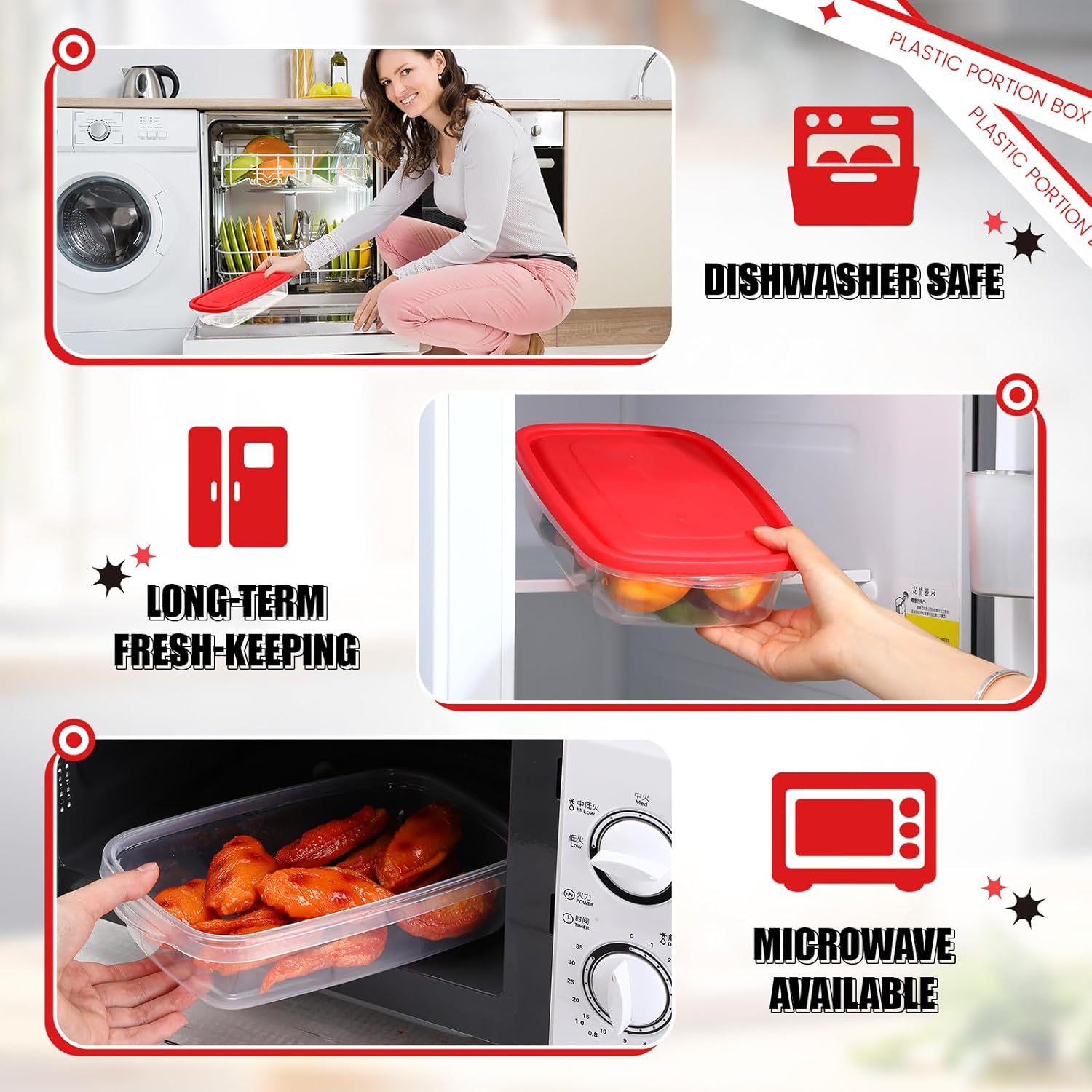 - Stackable Design: these plastic portion box with lids boast a stackable design that saves space in your fridge, freezer or pantry; Organize your meals or ingredients efficiently, enabling you to find exactly what you're looking for, exactly when you need it