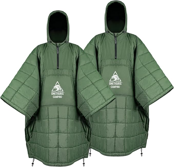 OneTigris Camping Blanket Honcho Poncho with 3M Thinsulate Insulation,2 Pack Thermarest Honcho Poncho Wearable Sleeping Bag Poncho for Camping Ultralight Water-Resisitant Warm Wearable Blanket