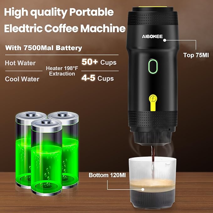 - 【Strong Battery Life】 This portable car espresso machine of travel is powered by a 7500mAh battery, which can brew 200+ cups using hot water when fully charged, 4-5 cups when using 40-50ml of cold water, and 2-3 cups with 80ml of cold water. Ensure you can have espresso anytime, anywhere!