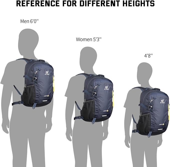 • UNIQUE APPEARANCE AND SAFETY DESIGN: The small hiking backpack features multiple compartments and an anti-theft zipper to prevent important documents and items from being stolen. The small daypack comes with an outdoor emergency rescue guide providing additional safety information for lovers of the outdoors. The LANTC20 backpack is the perfect combination of function and fashion, with a simple and smooth design featuring yellow webbing on the front panel and contrasting embroidery