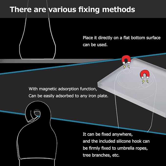 - 【Versatile Features and Applications】① With 3 light modes: high-intensity blue light (250 lumens/3 hours), low-intensity blue light (30 lumens/30 hours), and flashing red warning light (30 lumens/50 hours). ② It offers various mounting methods - can be used directly on flat surfaces, and its magnetic attachment feature allows it to easily adhere to any iron surface. It can also be hung on keychains or bags, making it an ideal EDC light for portability.