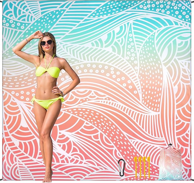 Beach Blanket Waterproof Sandproof Beach Mat 79”x 83” for 1-4 Adults Quick Drying Durable Outdoor Picnic Mat for Beach Festival Travel Camping Hiking (Gradiant P&GN-Ripple, 79"×83"(4 Person))