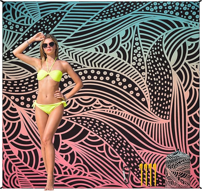 - 🌊SAND PROOF AND WATER RESISTANT-Made from durable and breathable nylon, it can prevent water effectively that always keep the mat dry. It is sand-proof that you can get rid of the sand easily by grabbing a corner of the blanket. Now you can enjoy your beach time with grace even the accident spray hit the blanket by the beach.
