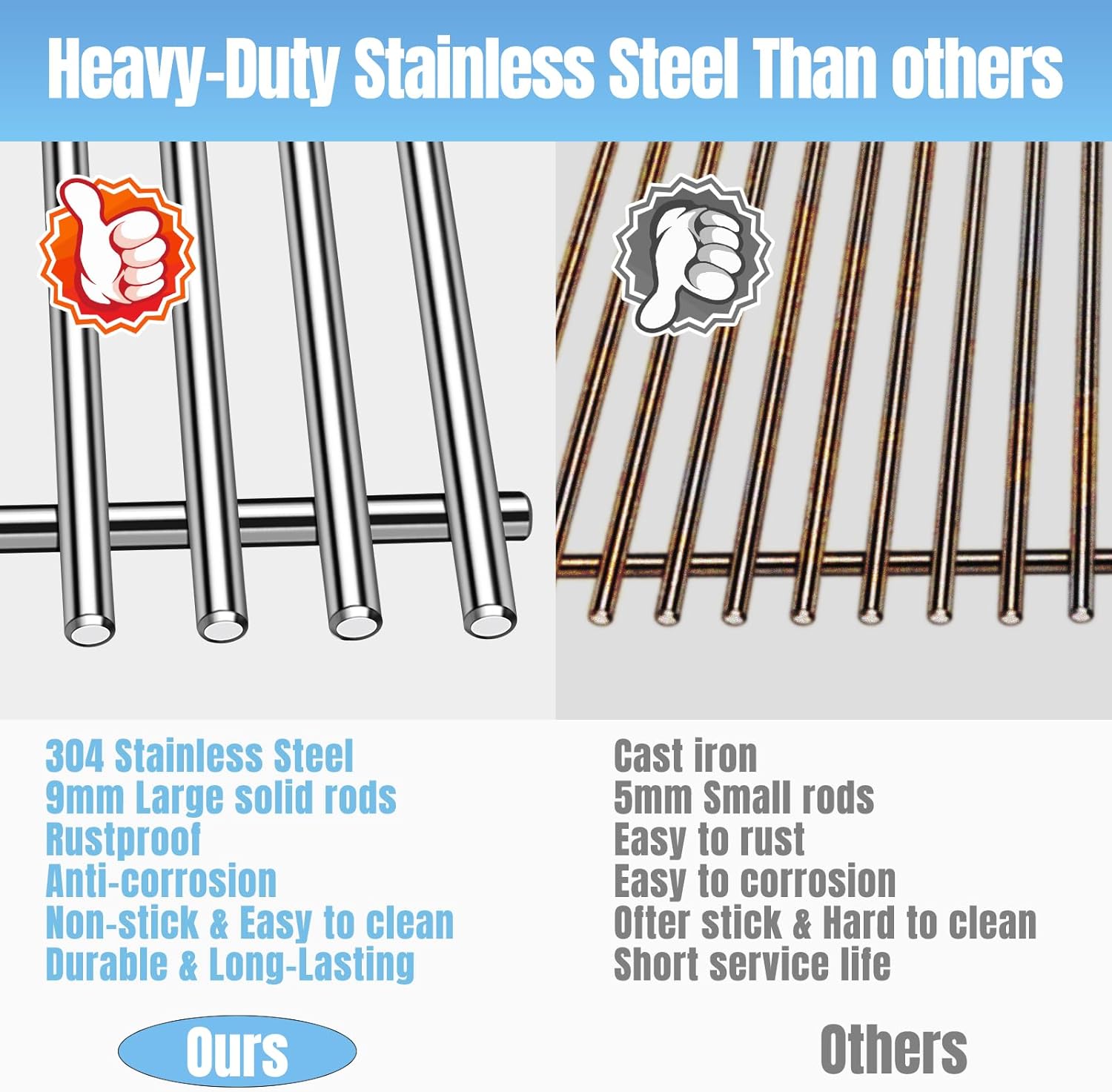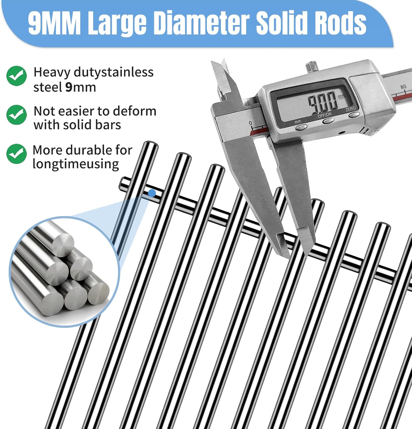 - 【Material】Made of 9mm solid rod bar food-grade 304 stainless steel to ensure long-lasting use.Resistant to high temperature and corrosion,safe contact with your food