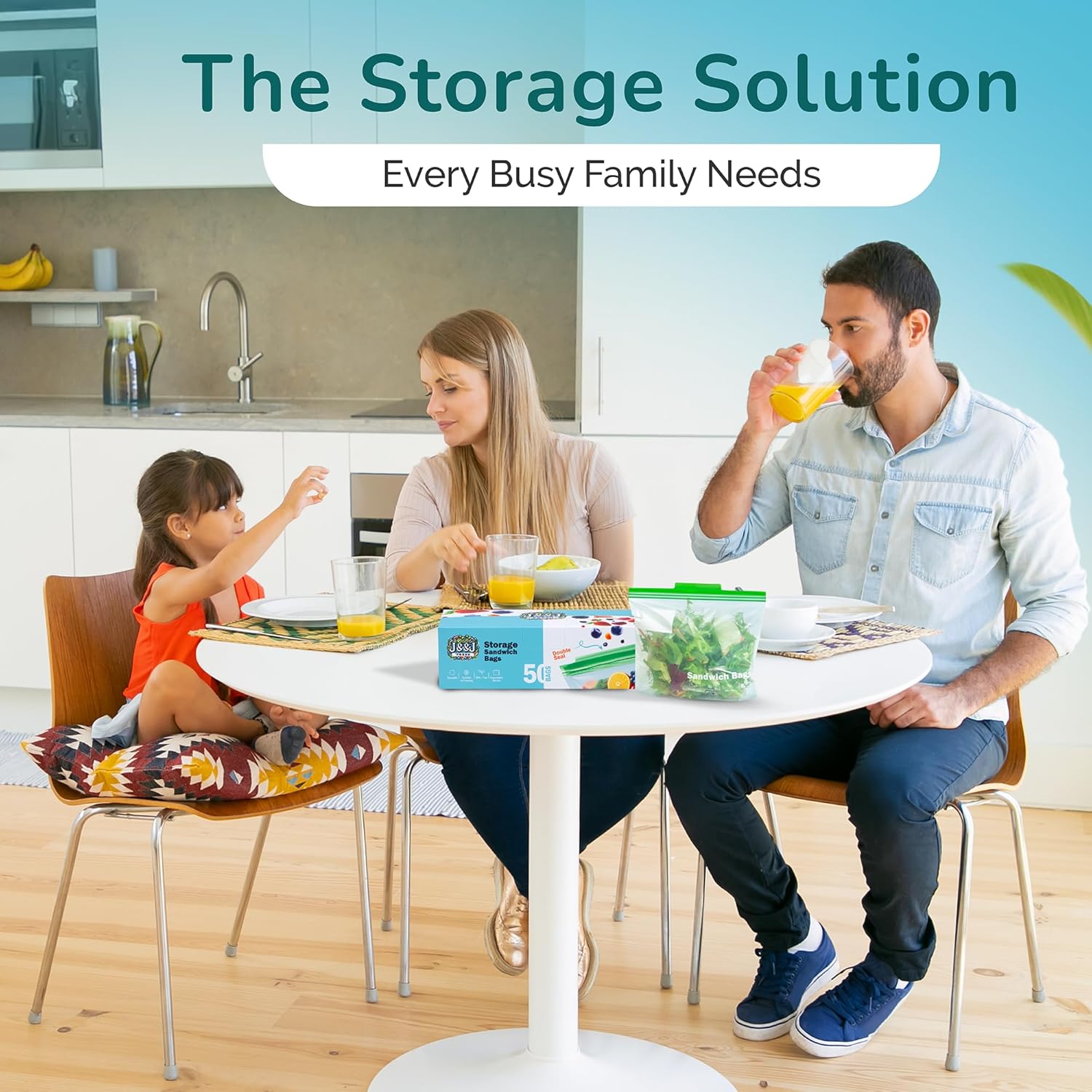 J&&J Fresh Sandwich Zipper Bags, 50 Pack — Reusable, BPA-Free, Leakproof — Expandable Bottom, Microwave-Safe, Strong Seal with Zipper Lock — Food Storage For Freezer, Fridge, Lunch, Durable & Washable
