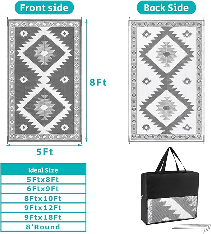 - Versatile Outdoor Carpet: The indoor outdoor plastic woven rugs have multiple choice in different colors(4'x6',5'x8',6'x9',8'x10',9'x12',9'x18',8'round), is ideal for a variety of indoor outdoor activities,like patio mat, deck rug, garden rug, beach mat, picnic mat, BBQ party mat, rv camping rug,pool rug,outdoor doormat,garage rug,front door mat,allowing you to have plenty of imaginable space for more fun.