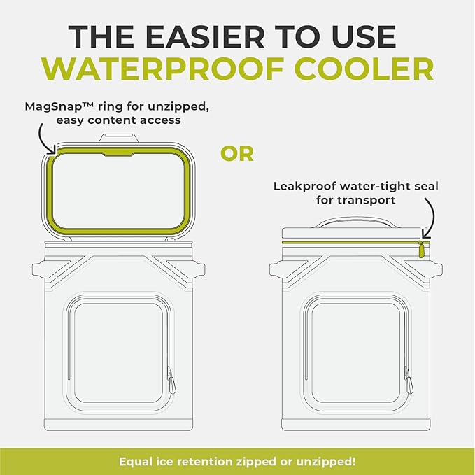 - EASY ACCESS DESIGN: Magnetic seal with MAGSNAP technology; keeps cooler securely closed and locks in cold air even when unzipped