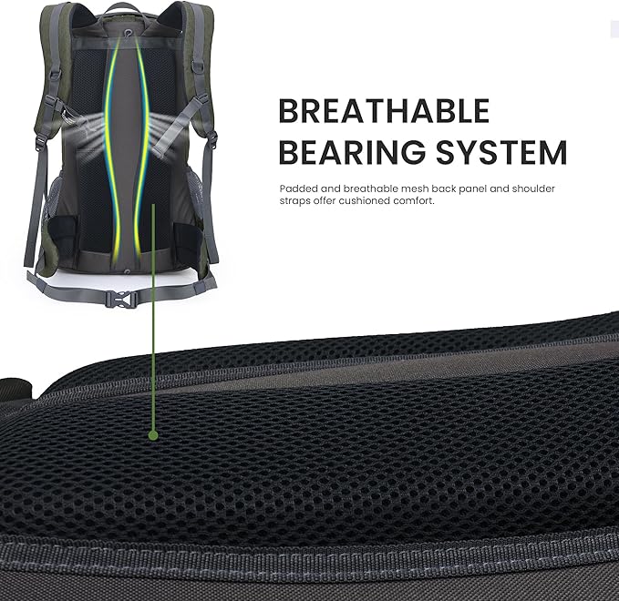 - Comfortable and Breathable: This travel backpack uses breathable mesh padding and a ventilated back system to keep your items dry and ventilate your back. The ergonomically designed structure helps to evenly distribute the weight, making it comfortable to carry while hiking.