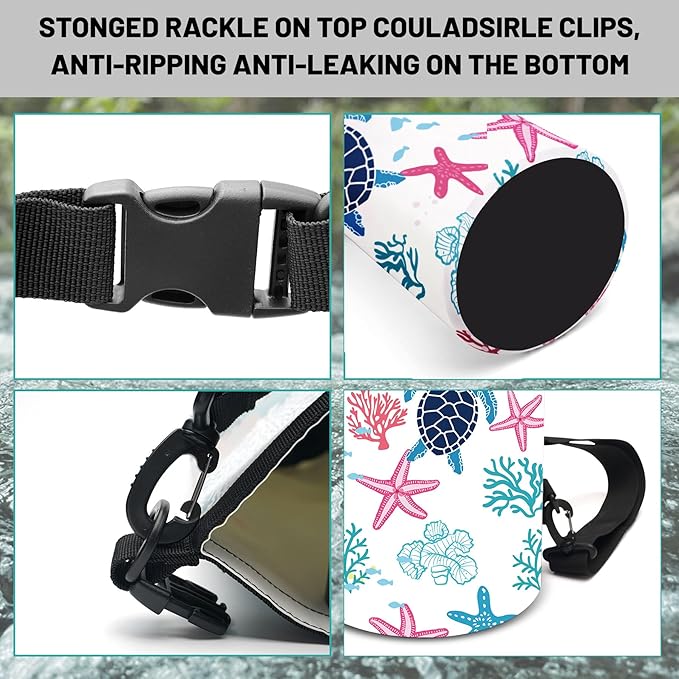 - Versatile Use for Every Adventure:Our sea turtle coral starfish waterproof backpack perfect for kayaking, camping, rafting, and hiking, our multifunctional dry bag adapts to various outdoor activities.IPX8 CERTIFIED WATERPROOF PHONE CASE: Included with your dry bag is an IPX8 certified waterproof phone case, compatible with phones up to 6.5 inches. Its snap-and-lock access and dual-sided clear windows allow for photos while keeping your device safe and dry.