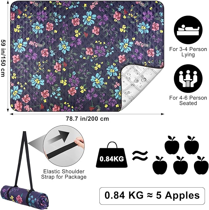 - Soft & Thick Three -Layer Structure: Our picnic blanket is crafted with a top layer of comfortable polyester fabric, a middle layer filled with plush microfiber, and a waterproof polyester film bottom, this three-layer construction, enhanced by high quality sewing technology, offers unmatched comfort and durability, ensuring that your picnic experience is as enjoyable as it is luxurious