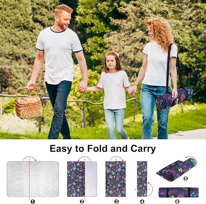 - Easy to Pack: Once your outdoor fun is over, you can easily pack up the picnic blanket using the included carrying strap, this practical feature makes it simple to fold, secure, and carry the outdoor blanket, allowing for easy transport to and from your favorite outdoor locations, no more struggling with bulky, awkward blankets