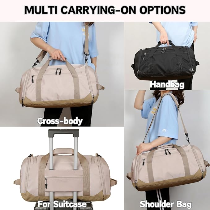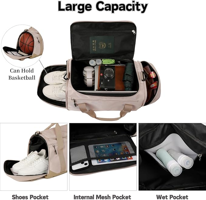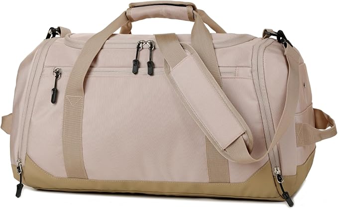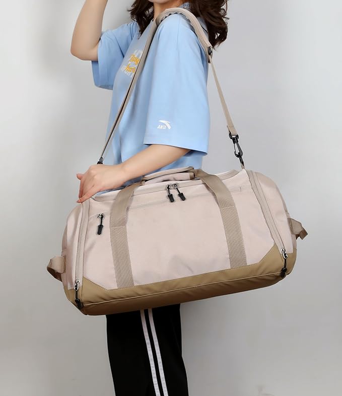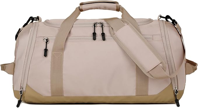 Gym Bag for Men Women, Large Sports Travel Duffle Bag with Wet Pocket & Shoe Compartment, 35L Waterproof Lightweight Carry On Overnight Weekender Bag for Workout, Fitness, Business - Beige