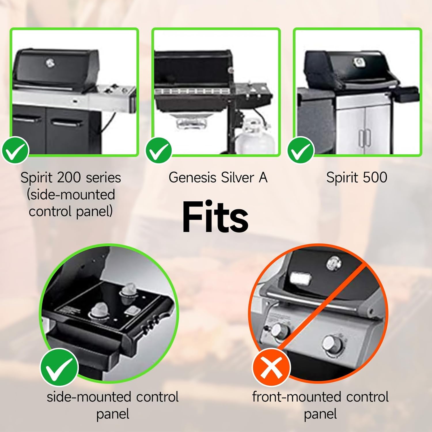 - Fits for Weber Spirit 200 Series(With Side-Mounted Control): Spirit E 200 (2009-2012), Spirit E-210 (model years 2012 and older), Spirit S 200 (2009-2012), Spirit S 210 (2009-2012). Does NOT fit front-mounted control panel models