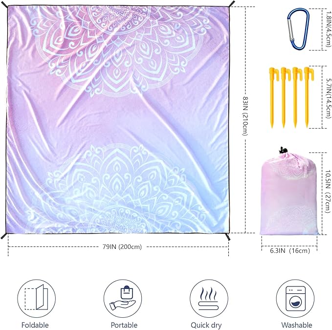 - 【Attractive Pattern Design】 Unique mandala, boho style and bold contrasting color beach mats will make you stand out on the beach! Enjoy the beach sunshine and leave unforgettable memories!