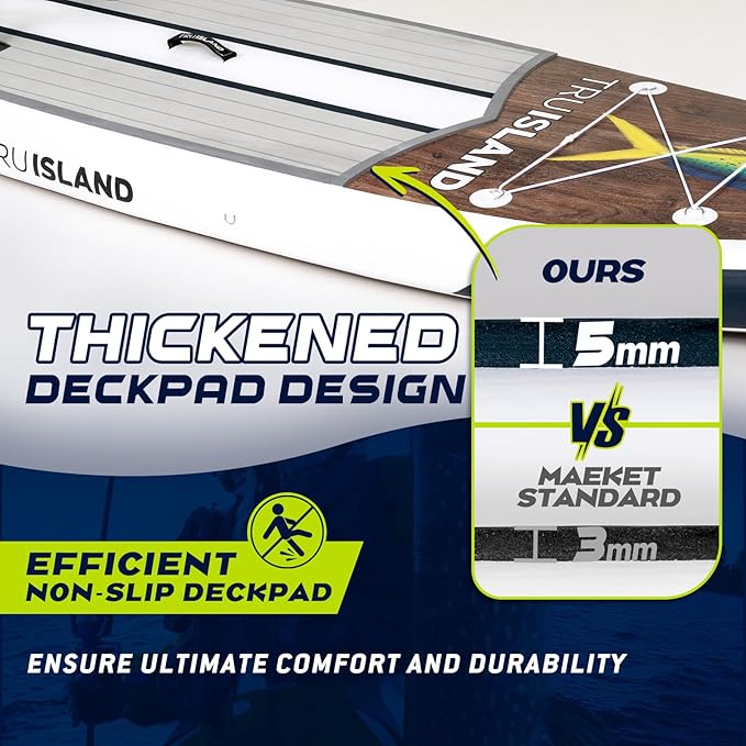 - Thickened deckpad:We used premium 5mm deckpad foam to ensure ultimate comfort and durability for our boards.Relax the feet to make body more comfortable and not too painful to fall on the board. Most company’s use much thinner deckpad but this is a testament to our quality and not cutting corners in every step of our board design