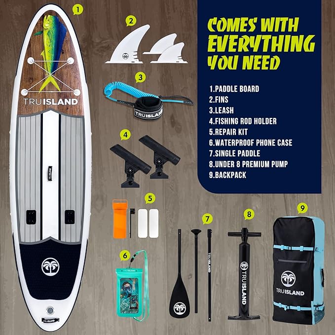TRUISLAND Inflatable Paddle Board, Stand Up Paddle Board with Backpack, Non-Slip Thickened Deckpad, Waterproof Phone Case, Leash, Paddle, Hand Pump