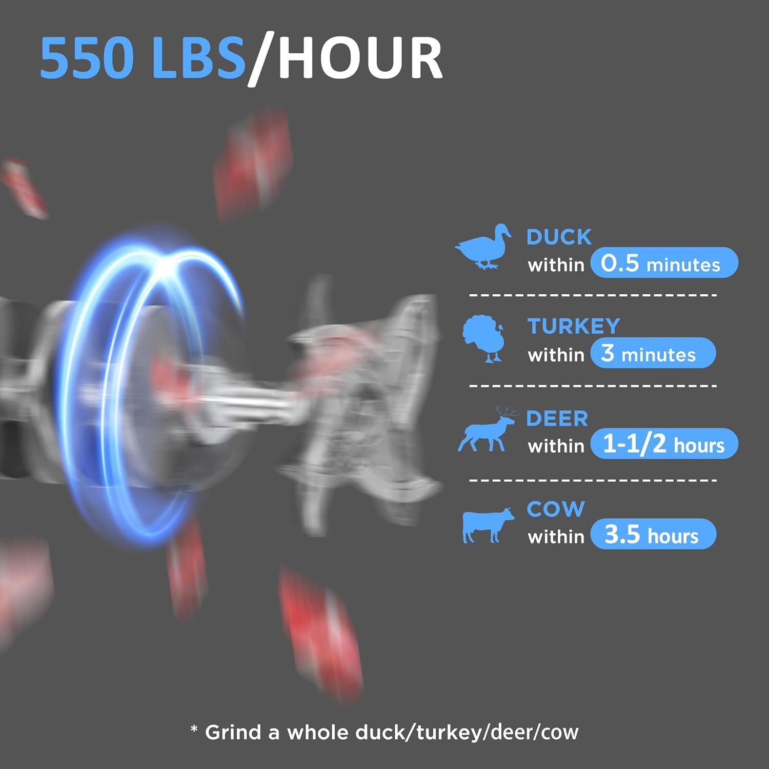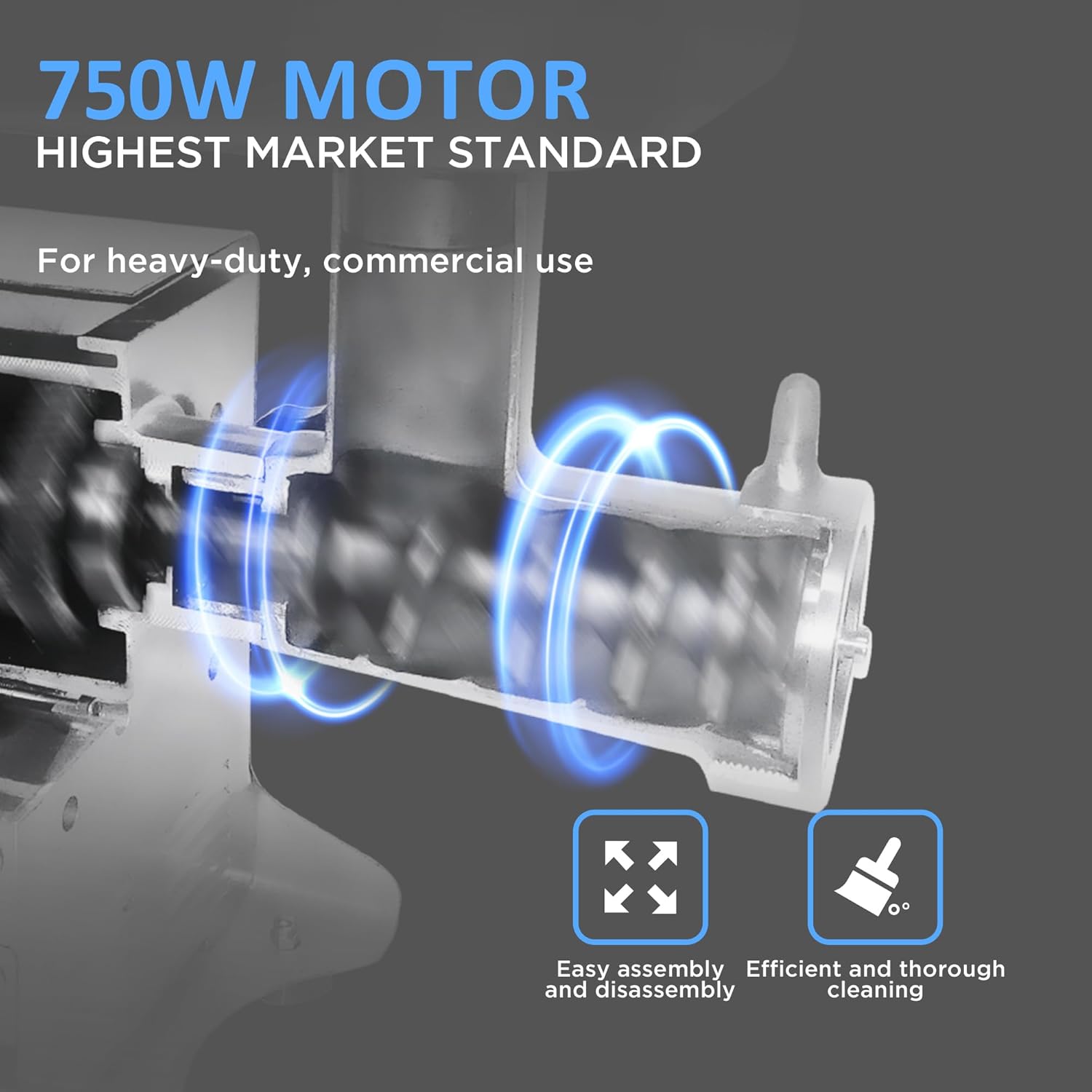 - Powerful 750W Motor for High Efficiency:The commercial meat grinder equipped with a 750W (1HP) motor, this commercial meat grinder can process up to 550 lbs of meat per hour. Designed for continuous operation, it ensures high efficiency for both home and commercial use.