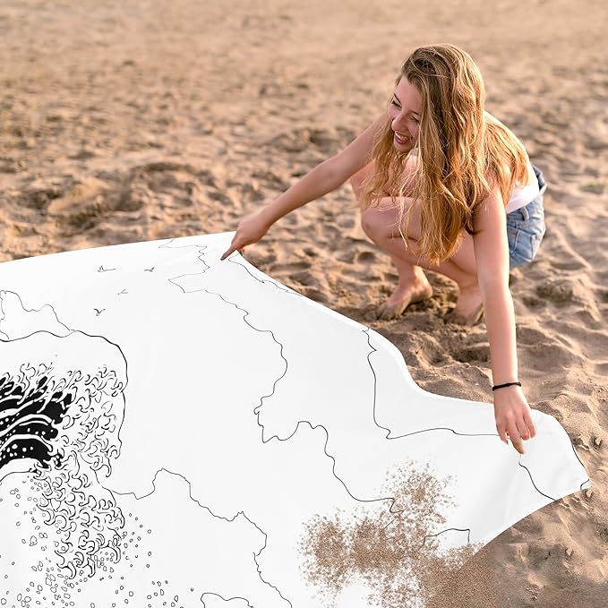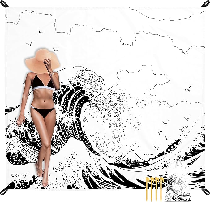 - Artistic Wave Design Beach Mat: Elevate your outdoor adventures with this striking black-and-white wave pattern beach blanket, inspired by the timeless beauty of ocean swells. The bold, high-contrast design turns your beach setup into an eye-catching display, blending artistic flair with functional beach essentials.