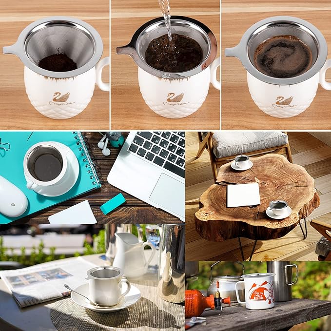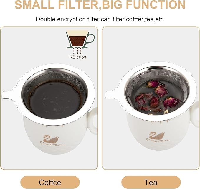 - The reusable coffee filter is made of food-grade 304 stainless steel,the ultra-fine double mesh that filters out coffee grounds while allowing all nutrients and flavored oils to pass through,So that the coffee nature flavour is reserved,you can use for tea too.