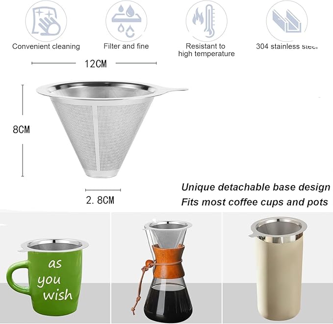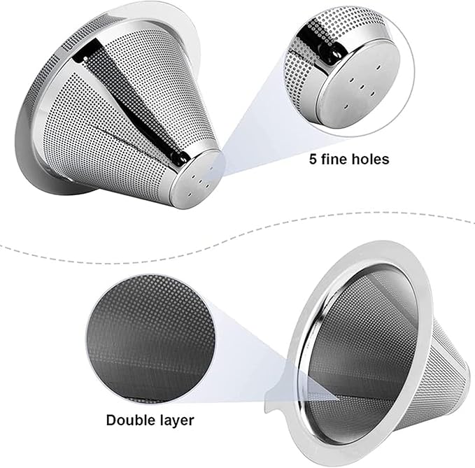 - With our coffee cone filter from durable stainless steel.just rinse and wipe it dry or place it inside your dishwasher.easily clean our coffee filter,the filter can be used always for you.