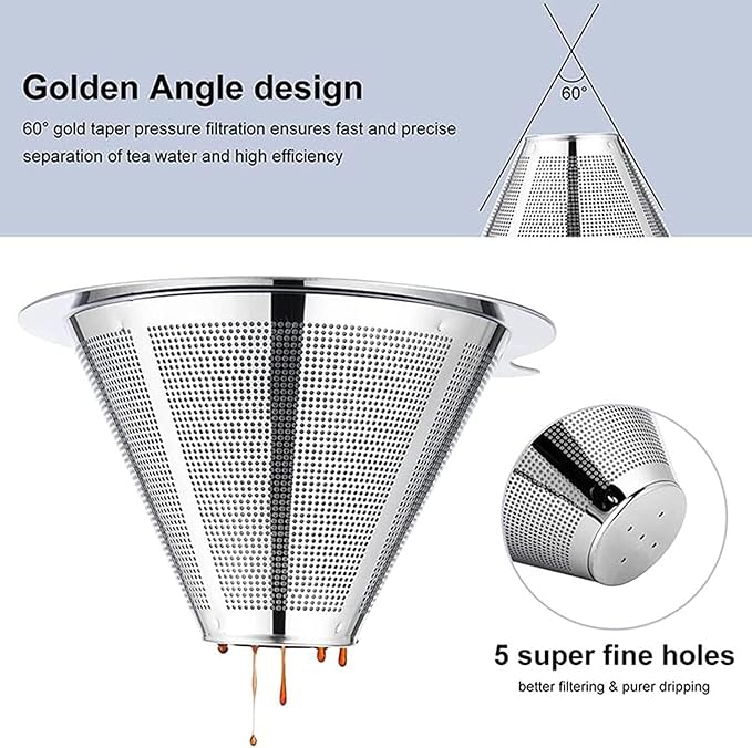 - 800 mesh super fine mesh locks richer coffee flavor.bottom 5 fine holes.wait for the pour over filter to drip out,So that the coffee nature flavour is reserved,without any other smell.
