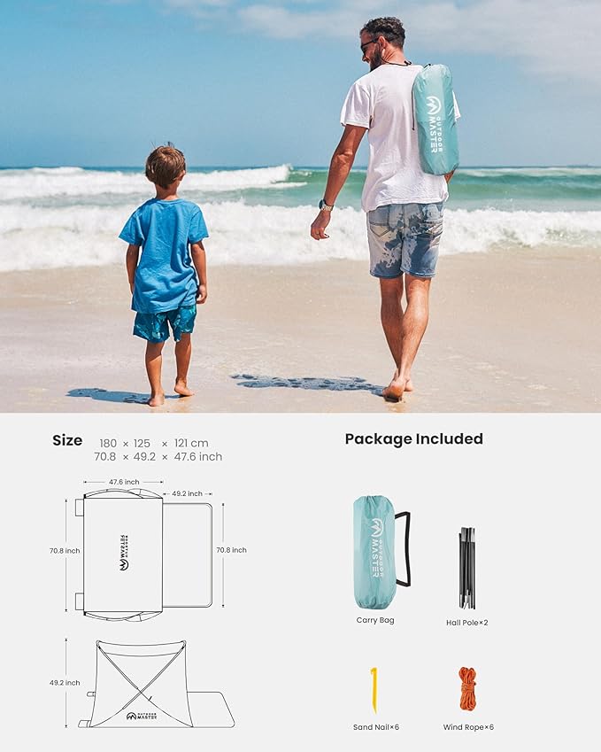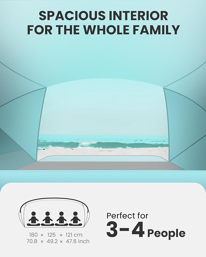 - UPF 50+ Protection & Weather Proof: Composed of excellent 210T sun - blocking coated polyester, our beach tent has the remarkable ability to efficiently obstruct heat and filter out 98.5% of the harmful UV rays. Rated 4000mm PU coating, this beach tent is completely weather proof, ensuring you stay dry even during rain or light snow