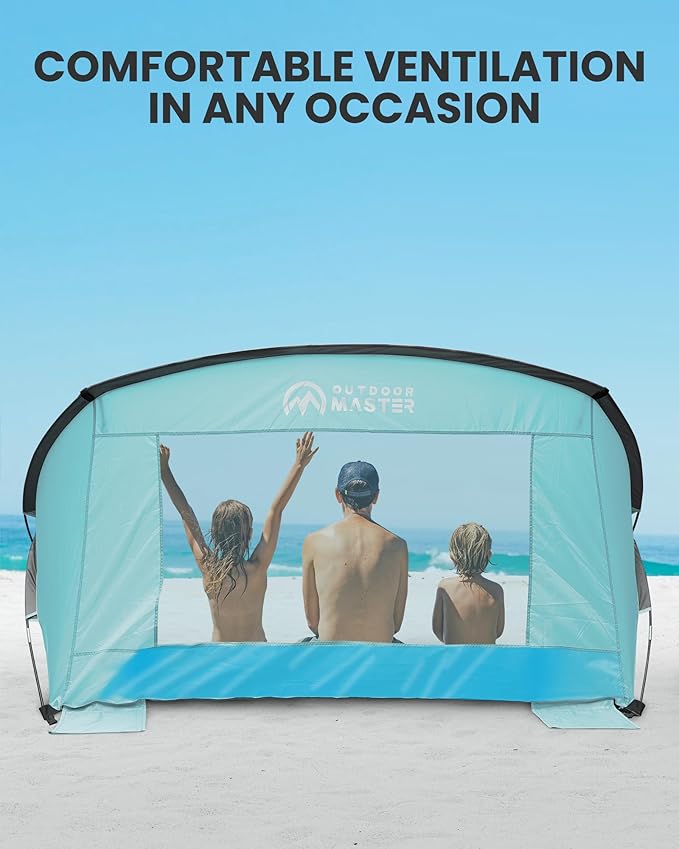 - Spacious Interior For Whole Family: The unique circular design of the tent allows for a 20% increase in capacity compared to the regular triangular design. OutdoorMaster beach tent enough room for 2 adults and 1/2 kids to sit in the inside. Ideal for family car camping or camping site