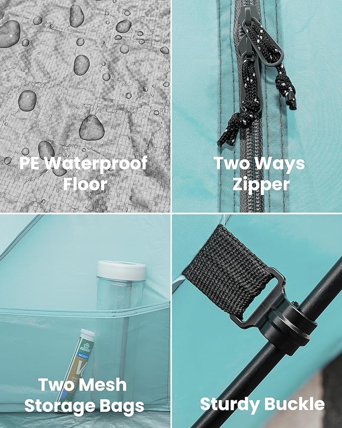 - Innovative and Versatile Design: The beach tent has a zippered door for private changing. The front floor's extension offers more space for various activities. Further more, our sun shade featuring numerous mesh panels, not only offers good visibility but also promotes cross - ventilation