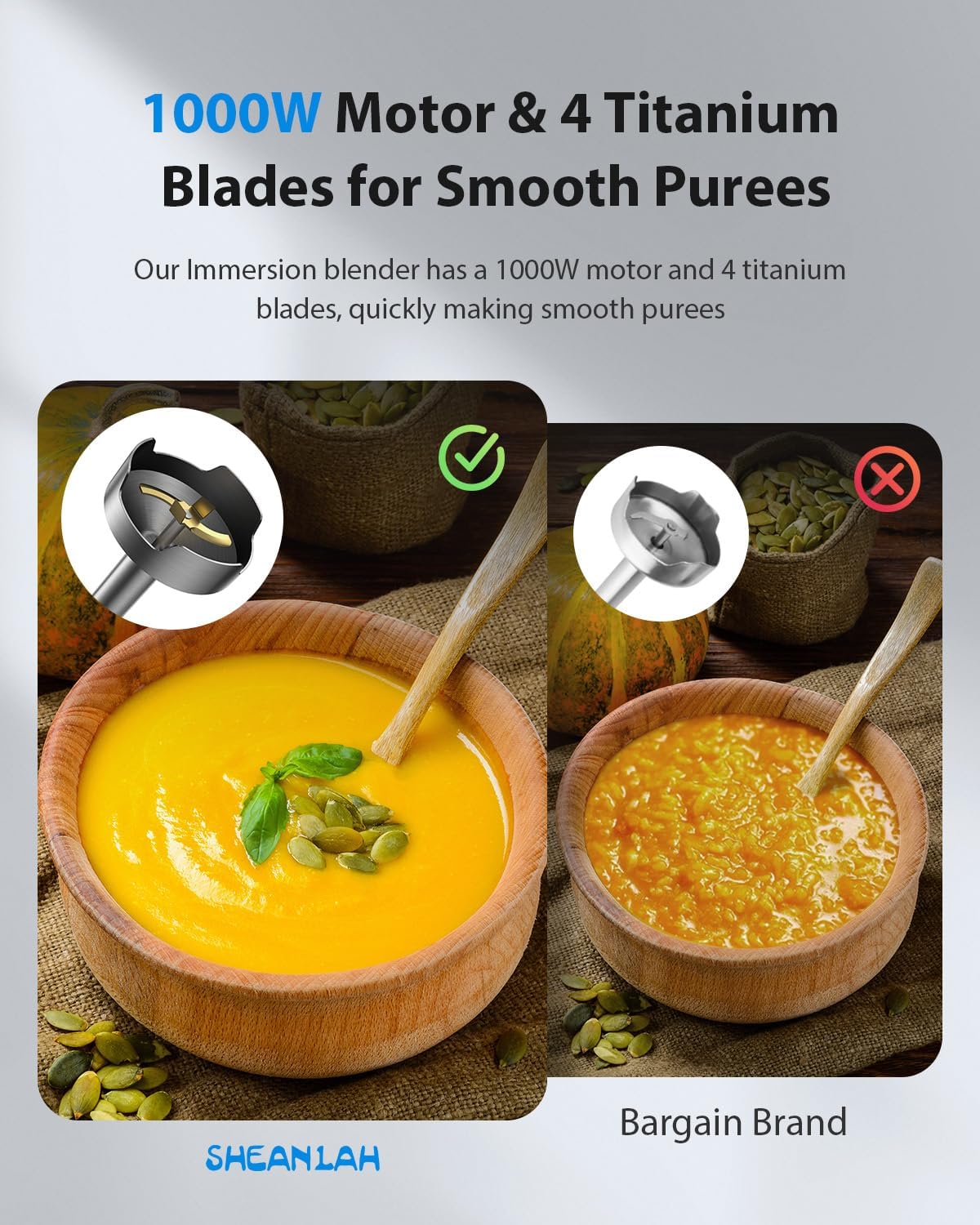 - 【4-Blade Titanium Head】Our immersion blender features a 4-blade titanium head for superior performance. Compared to standard 2-blade designs, it blends more efficiently, This cutting-edge design not only improves blending efficiency but also extends the lifespan of the blades, making it a reliable choice for all your culinary needs.
